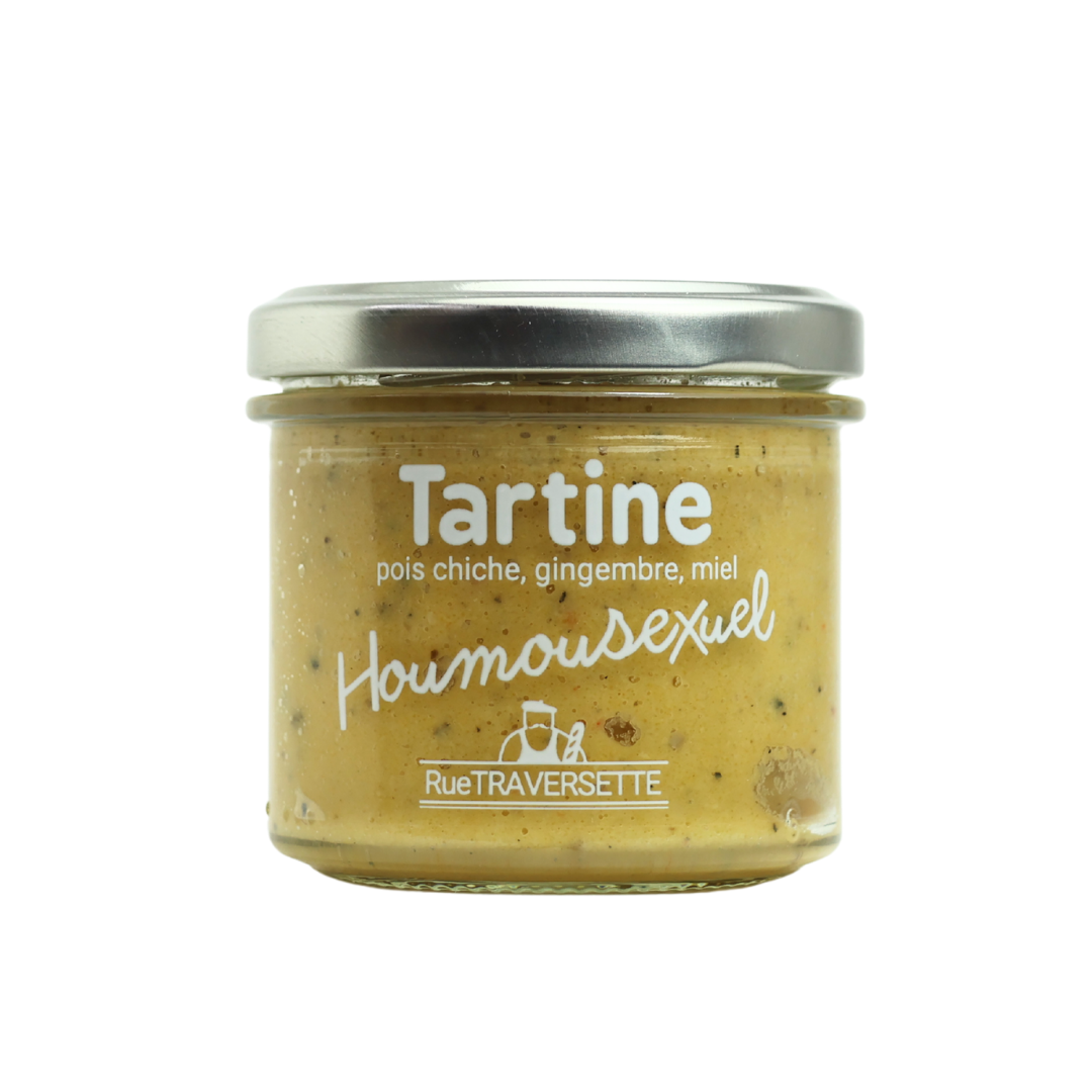 Chickpeas (60%), onion, olive oil, ginger (4.2%), lemon juice, Espelette pepper, hibiscus, salt, honey (0.41%), black sesame oil , orange blossom, nigella, turmeric, black pepper.