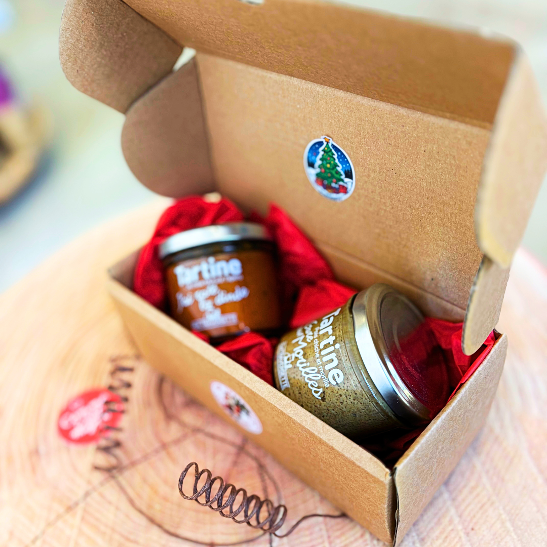 Coffret “Gare aux Morilles & J’ai raté la dinde” : deux pots apéro gourmands et malicieux pour sauver vos fêtes (même si la dinde est cramée). Du goût, du fun, et zéro prise de tête. Parfait pour un cadeau de Noël qui fait marrer et régaler.