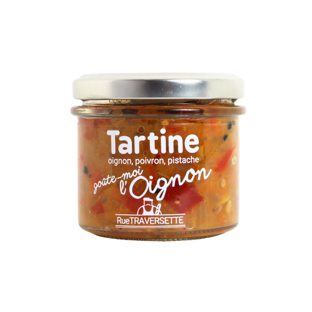 Oignon (66%), poivron rouge (22%), huile d'olive, huile de colza BIO, pistache (2%), vinaigre, miel, sel, nigelle, paprika, tandoori, poivre noir, piment fort