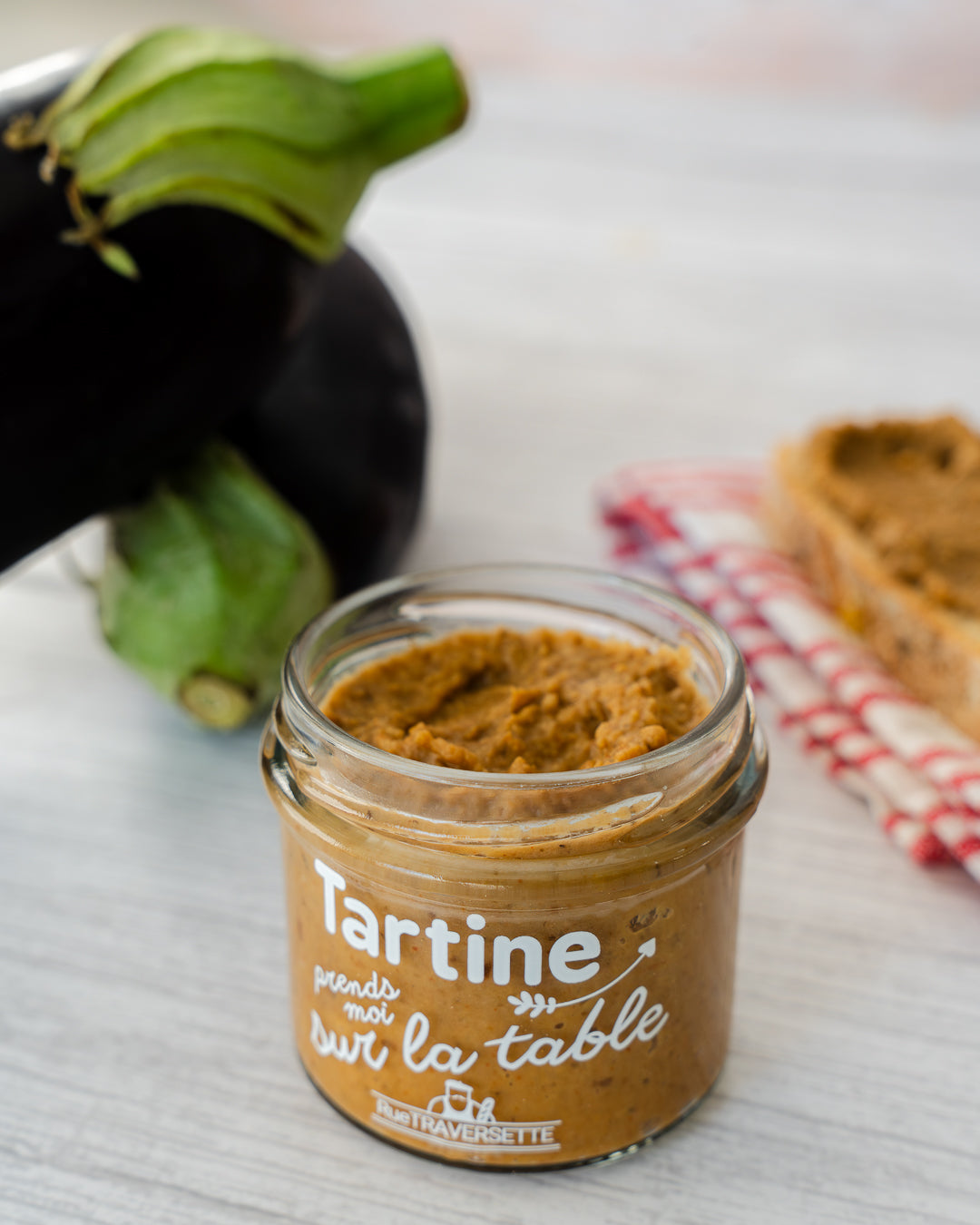 Aubergine (81%), huile de colza, olive noire (6%), vinaigre d'alcool blanc, sel, oignon, paprika doux, ail, poivre noir, piment d'Espelette